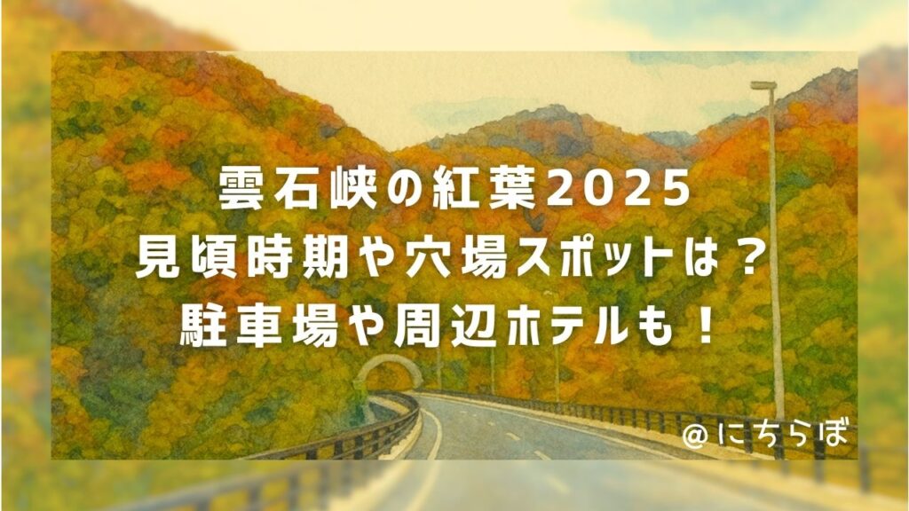 雲石峡の紅葉シーズンが今年もやってきました!道南屈指の紅葉名所として知られるこの場所で、2025年の最新情報をお届けしますね。 2025年雲石峡紅葉の完全ガイド 見頃時期:9月下旬~10月中旬(ピークは10月第1週) 駐車場:雲石峠付近に約10台、見市温泉... -